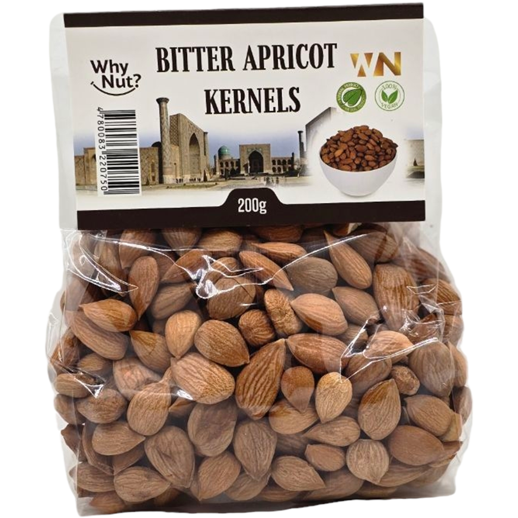 INFORMACIJE O PROIZVODU: Why Nut jezgra divlje kajsije (gorka jezgra) je prirodni antihelmintik i ima antiparazitsko dejstvo. Dobar je izvor željeza, kalijuma i fosfora, ali glavni terapeutski sastojak ovog proizvoda je "vitamin B17". Razlog gorkog okusa je amigdalin – odnosi se na cijanogene glikozide, izvor cijanovodonične kiseline, koja se oslobađa kada se uzima oralno. Stoga, nekontrolirana upotreba sjemenki kajsije može uzrokovati trovanje!