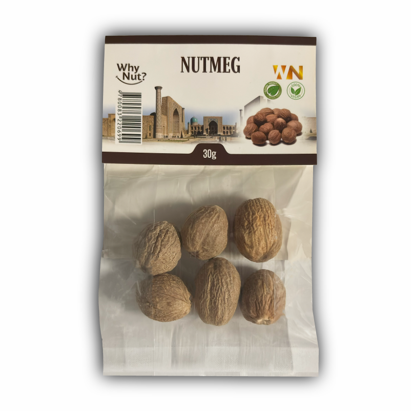 INFORMACIJE O PROIZVODU: WhyNut muškatni oraščić bogat je aromatičnim uljima, mineralima, vitaminima B skupine te snažnim antioksidansima – flavonoidima. Najviše se upotrebljava u kolačima, pekarskim proizvodima i drugim slasticama, no može se upotrijebiti i za dodavanje okusa pireu od krumpira, raguima, kobasicama te različitim mediteranskim, indijskim i arapskim jelima s povrćem i mesom. Dobro se slaže s kardamomom, biberom, đumbirom, klinčićem i cimetom. Ovaj čudesni začin i lijek svakako treba naći u vašoj kuhinji!